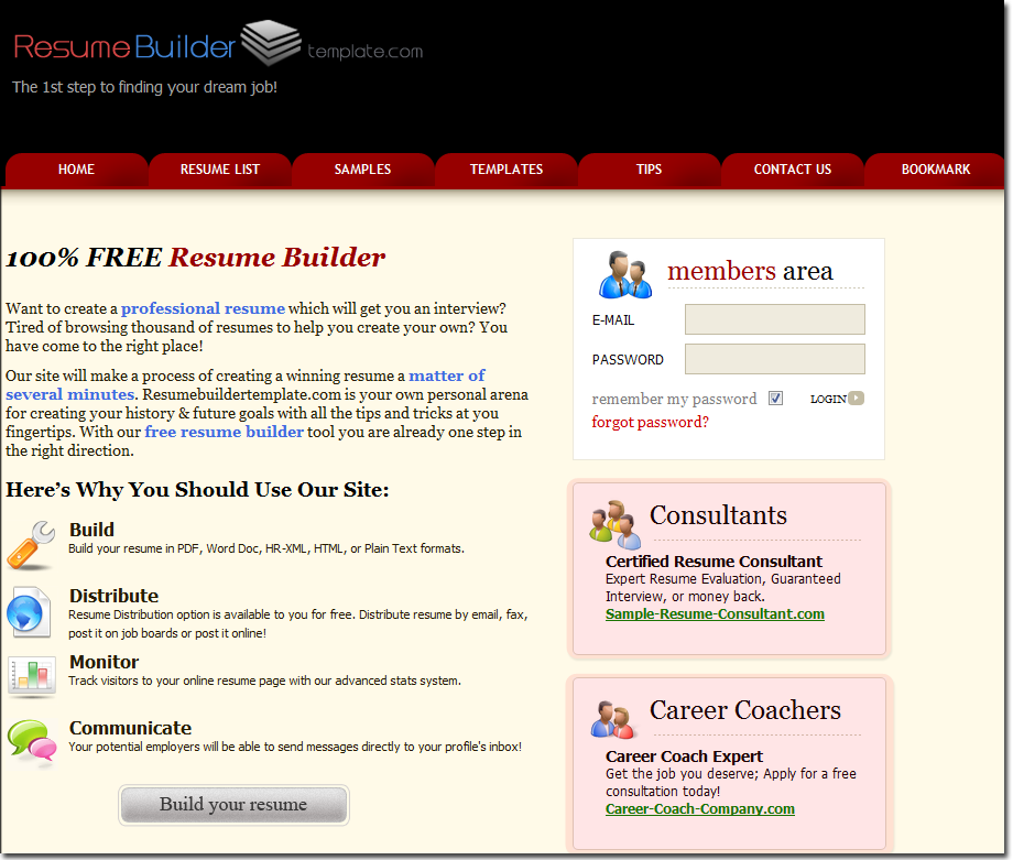 Whether you are looking to advertise your resume consultation or career coaching service, whether you are a staffing agency or a company, looking for qualified candidates to fill in a position, ResumeBuilderTemplate.com provides you with a variety of cost-effective solutions to target the niche audience of your choice and meet your sales goals.